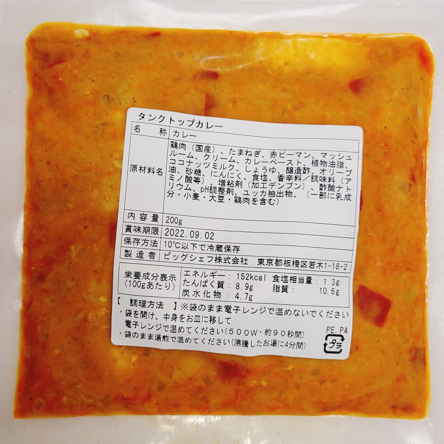 冷蔵庫には2パックのタンクトップカレーがある。